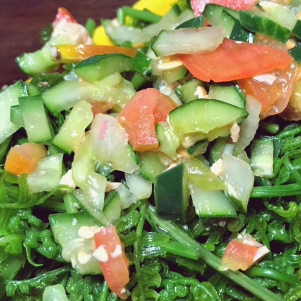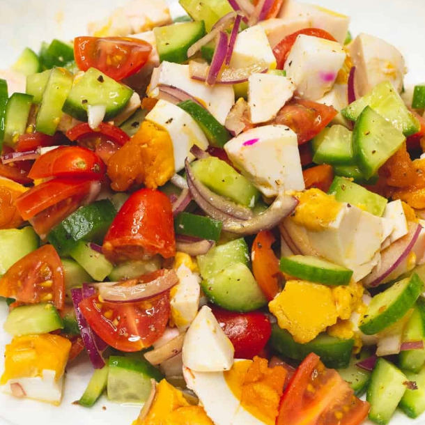 lettuce, tomato, cucumber, tuna, cheese, olive and egg (good for 3)